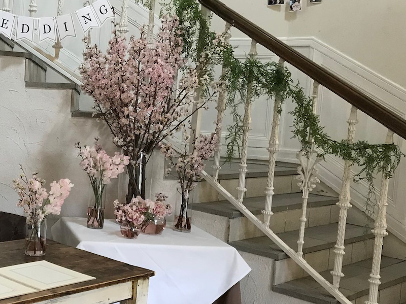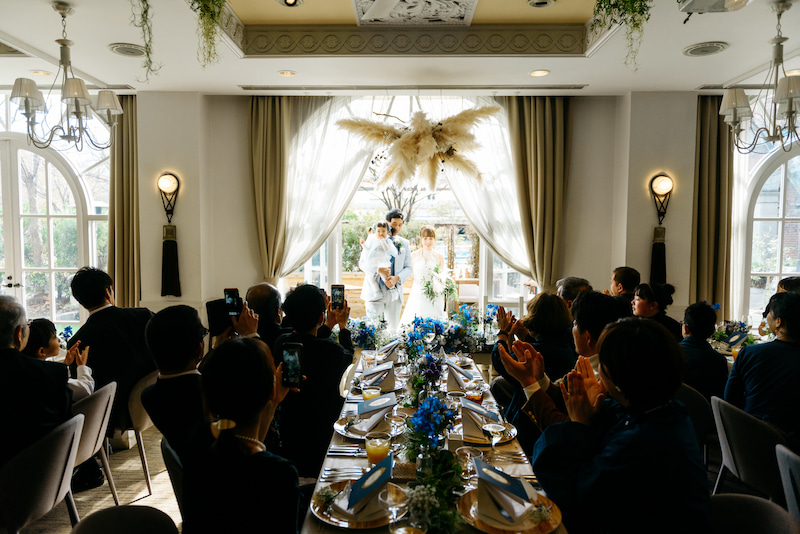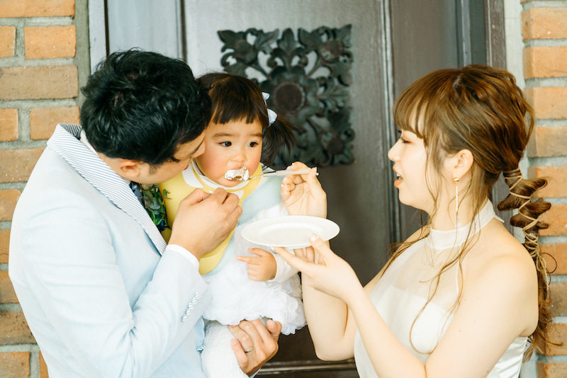 生花を使用したアレンジメントとヴィラブランシュで作ったオリジナルケーキが