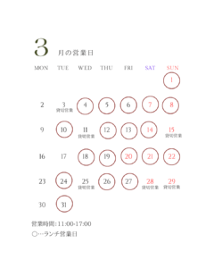3月営業日のお知らせ
